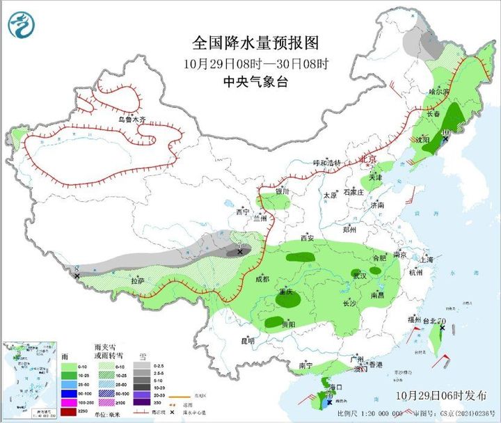 昨日,西藏东部、川西高原北部、青海南部等地出现小到中雪或雨夹雪,局地大雪。预计本周内,青藏高原东部仍多雨雪天气,西藏南部和中东部、青海南部、川西高原北部等地的部分地区有中到大雪或雨夹雪,局地有暴雪或大暴雪;此外,今明两天,西北地区东部、华北南部、东北地区中南部、黄淮、江汉、江南及西南地区、海南岛有小雨,部分地区有中到大雨、局地暴雨;内蒙古东北部、黑龙江北部、吉林东部的部分地区有小到中雪或雨夹雪、局地有大雪。
