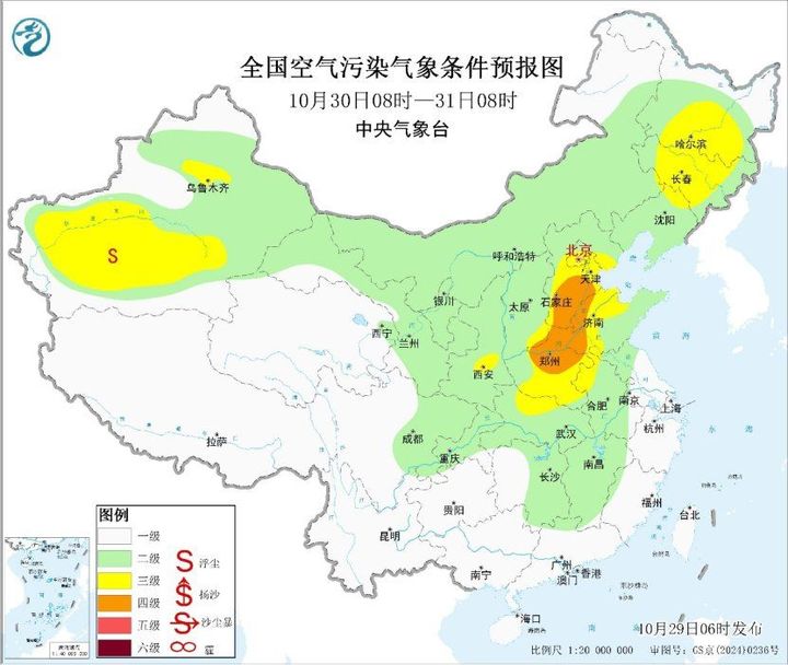 气象监测显示,今晨,河北中南部、北京、天津东部、河南北部、陕西北部、甘肃南部等地部分地区出现大雾天气,局地能见度不足500米。预计今晨至上午,北京、天津、河北、甘肃东部、陕西中北部、河南北部、山东西北部、湖北中西部、贵州东部和西部、湖南北部等地部分地区有大雾天气,其中北京南部、天津北部、河北中南部、河南北部等地的部分地区有能见度不足500米的浓雾,局地有能见度不足200米的强浓雾。明日,受冷空气影响,上述地区霾天气自北向南逐渐减弱或消散。
