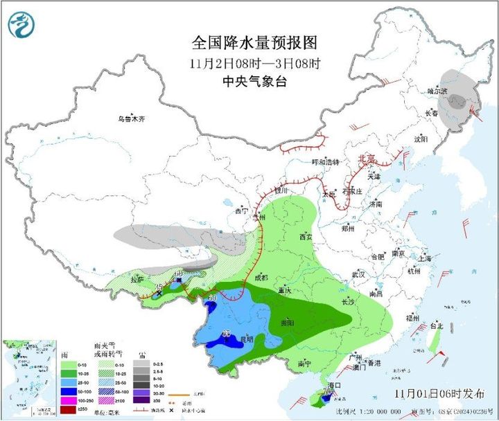 今天,我们主要关注大雾、雨雪及冷空气对我国的影响。其中,西藏东南部、云南等地雨雪较强;冷空气将影响内蒙古中东部、东北地区等地,黑龙江部分地区降雪较强。