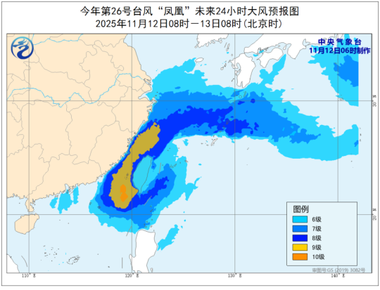 受台风和冷空气共同影响,预计今天,东海大部海域、台湾海峡、台湾以东洋面、巴士海峡、南海东北部海域,浙江沿海、福建沿海、广东沿海、台湾岛沿海将有6~8级、阵风9~10级的大风,其中,东海西南部、台湾海峡、南海东北部海域、台湾岛西南部沿海的风力可达9~10级,阵风11~12级;浙江中东部、福建北部、台湾岛西北部和南部有中到大雨,局地暴雨。