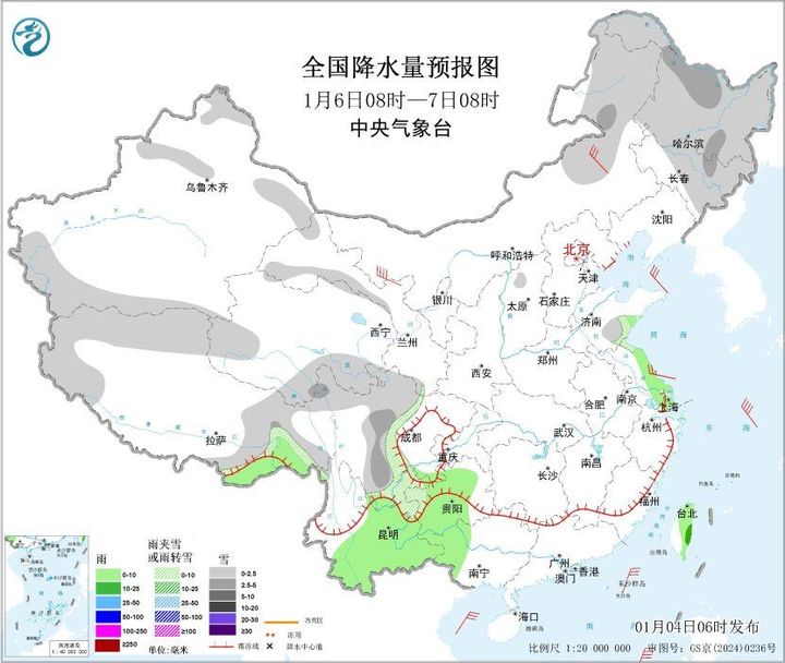 预计未来三天,西南地区东部、青藏高原东部等地有小雪(雨)或雨夹雪,局地中雪。5日至6日,内蒙古东北部、东北地区北部有降雪过程,量级小到中雪。雨雪天气将对交通出行造成不利影响,请公众外出注意防范路面湿滑,驾车出行注意保持安全车距。