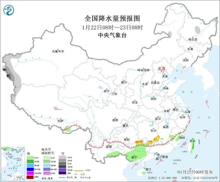 需要注意的是,1月22日夜间至24日,新疆西部、西藏西南部的部分地区有中到大雪,局地有暴雪或大暴雪。期间,青藏高原自西向东将出现小到中雪,降雪过后气温下降6~8℃,局地可超过10℃。
