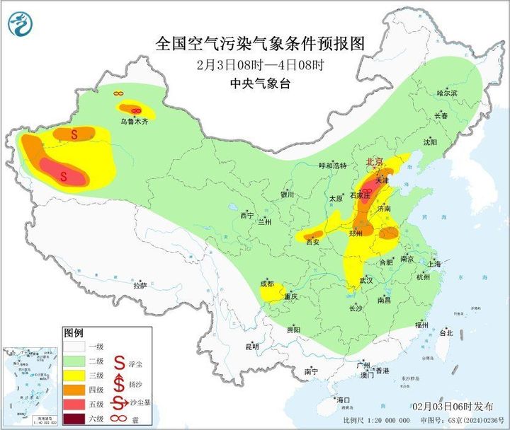 全国大部雨雪较弱 华北黄淮等地大气扩散条件差