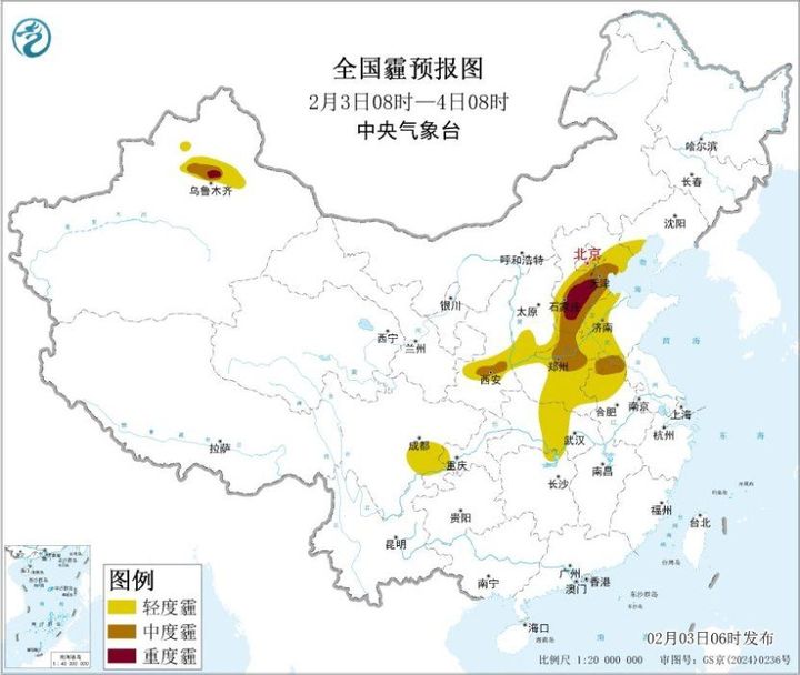 今晨,安徽南部、浙江北部、贵州西部、云南东部、新疆北疆等地部分地区出现大雾,局地出现能见度不足200米的强浓雾。3日至4日,华北中南部、黄淮中西部、汾渭平原、江汉等地的部分地区有轻至中度霾,其中,4日华北中南部局地重度霾。气象专家提醒,上述地区的公众外出时请做好个人健康防护,易感人群建议减少户外活动。