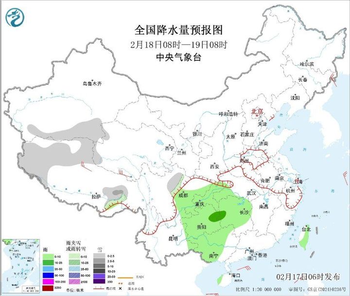 昨日以来,新疆伊犁河谷、内蒙古东部、甘肃中部、陕西南部、河南中南部、湖北北部和西部、安徽中北部等地部分地区出现小到中雪或雨夹雪;浙江、江西北部、湖南中部等地部分地区出现中到大雨。今晨,浙江中南部、江西中南部、湖南南部、贵州中东部、广东北部、广西中北部等地出现6~10℃降温,局地降幅超过12℃。