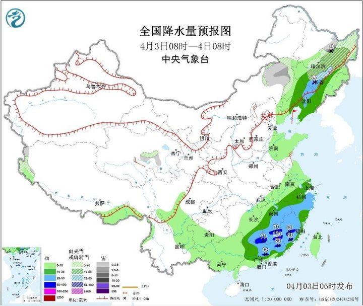 清明假期(4月4日至6日)即将开启,预计假日期间北方多大风天气,阵风风力可达6~8级,局地9~10级;南方多阴雨,5日至6日江南南部和华南有强降雨和强对流天气过程,广东东北部、福建西南部等地累计雨量150~200毫米,局地并伴有8~10级雷暴大风和冰雹等强对流天气。