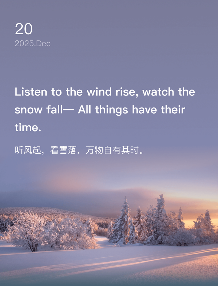 Listen to the wind rise, watch the snow fall— All things have their time.