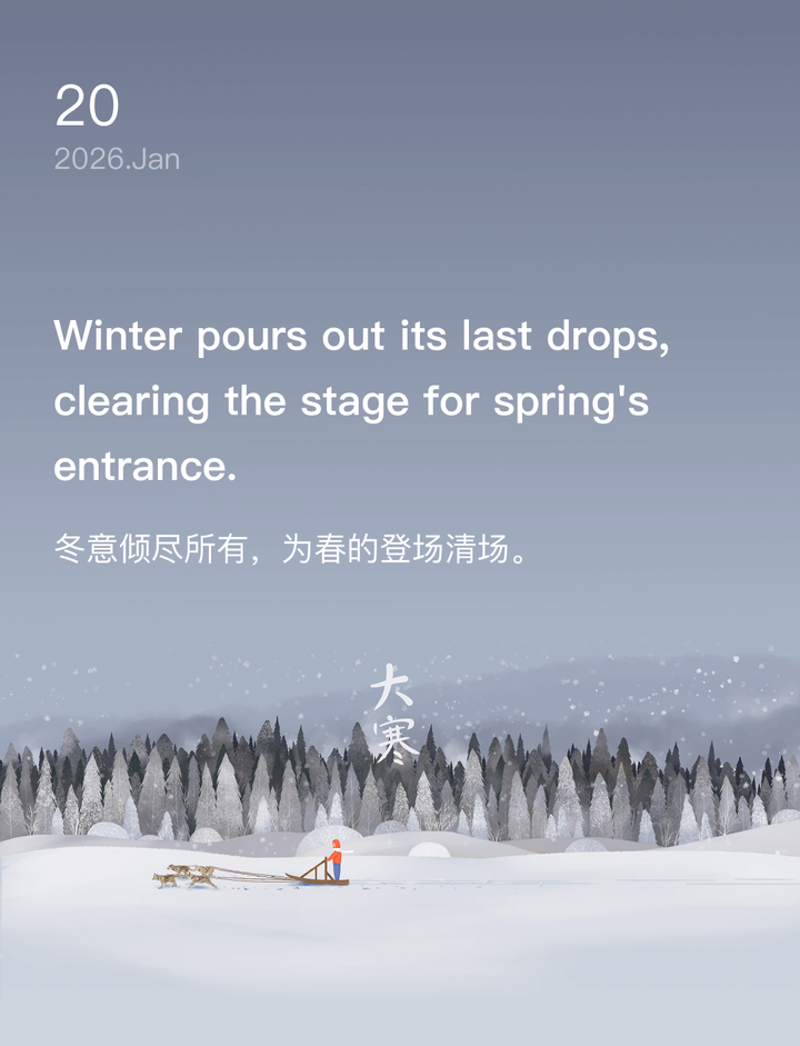 词霸每日一句 Distant mountains cloak themselves in snow, awaiting spring's letter. 远山裹着雪袍,静候一封春的来信。 [图片]