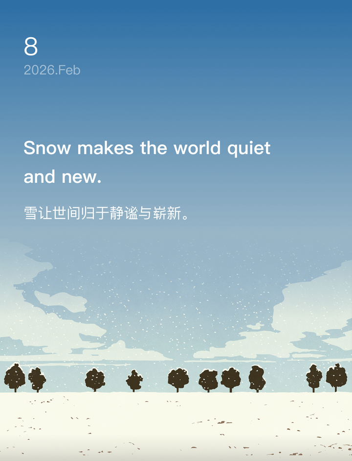 词霸每日一句 Distant mountains cloak themselves in snow, awaiting spring's letter. 远山裹着雪袍,静候一封春的来信。 [图片]