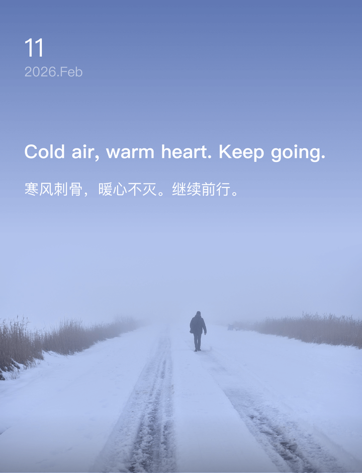 寒风刺骨,暖心不灭。继续前行。