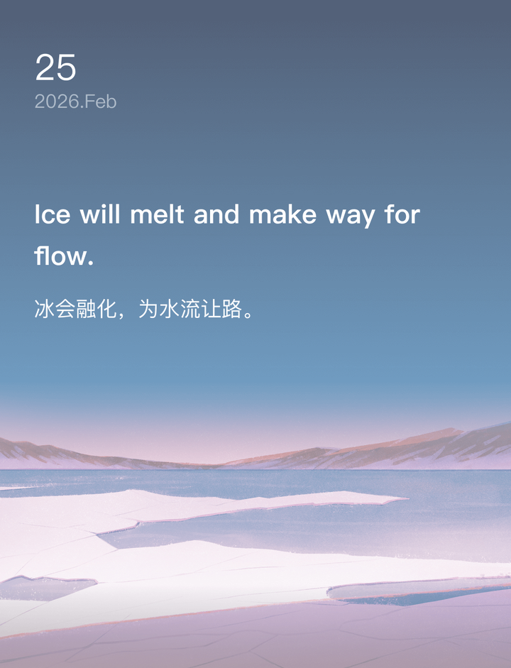 词霸每日一句 Distant mountains cloak themselves in snow, awaiting spring's letter. 远山裹着雪袍,静候一封春的来信。 [图片]